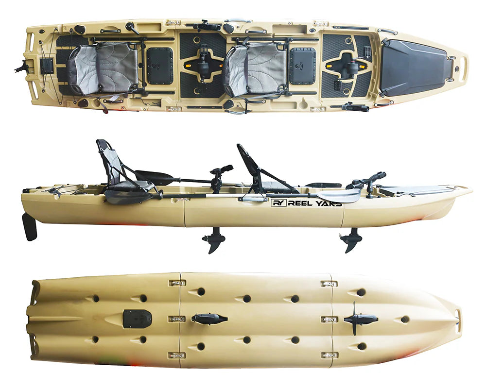13.8ft Rocket Reel Yaks Propeller Drive Tandem & Solo Modular Fishing Kayak | Propeller Drive | 550lbs Capacity | 3 Piece