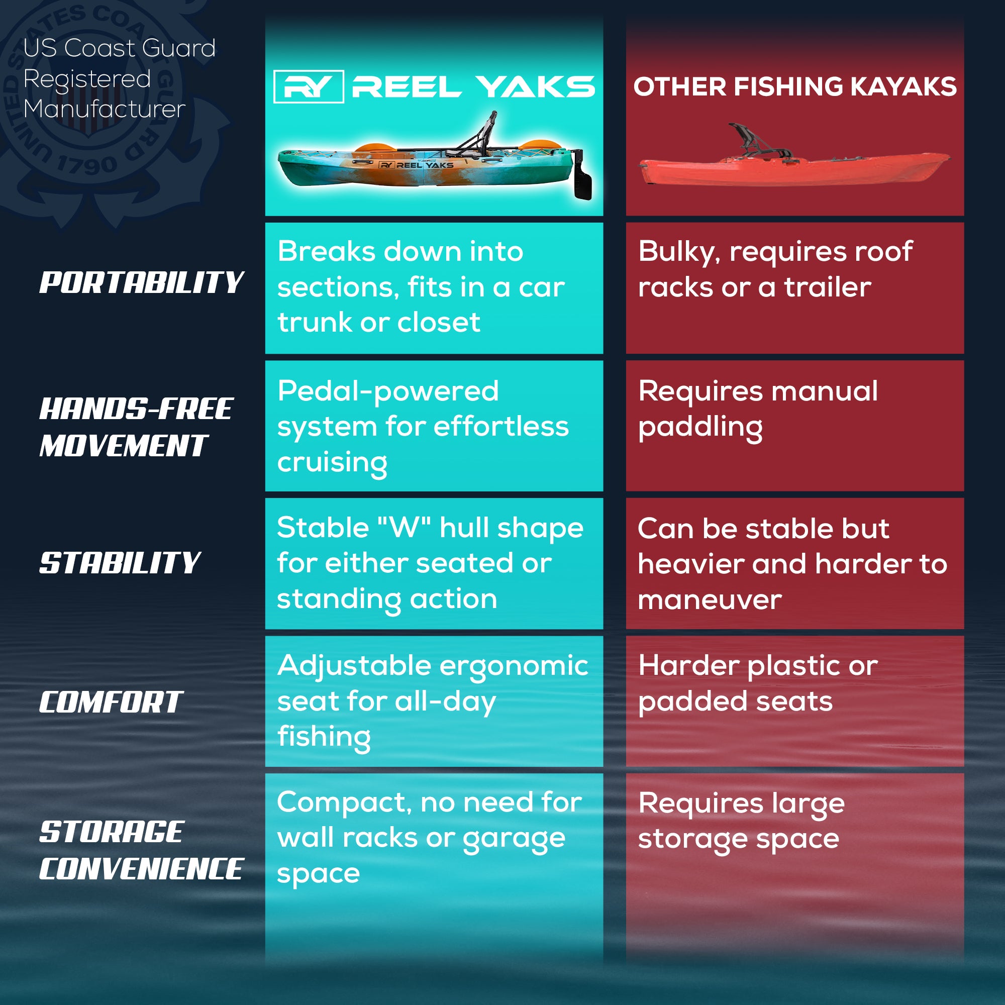 Navigate to your favorite fishing spots and power through currents with the propeller pedal drive. Its cycling-like motion feels natural, delivering a smooth, efficient ride. The instant reverse function lets you stop or back up quickly—perfect for fighting fish or maneuvering tight spaces. A sturdy skeg shields the propeller from damage, and if it takes a hit, replacements are simple and affordable—unlike complex fin systems. Upgrade your angling adventure today!