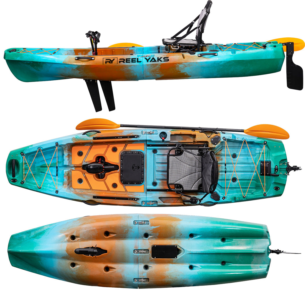 This kayak has three options to mount a trolling motor if you're looking at powered options. A motor can be mounted in the pedal Pedal Power recess, on a side bar to the left or right of the rear cargo hold or by replacing the rudder.