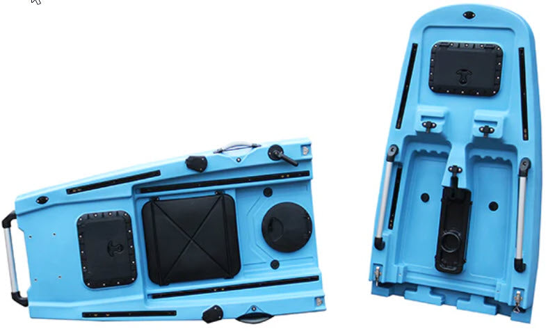 This kayak can be transported in its disassembled form on the back seat of a car, in the trunk or the back of your pick up. We encourage you to check the measurement of the two sections below against your vehicle. It can also be transported in its full form on roof racks, J-racks, trailers, etc.