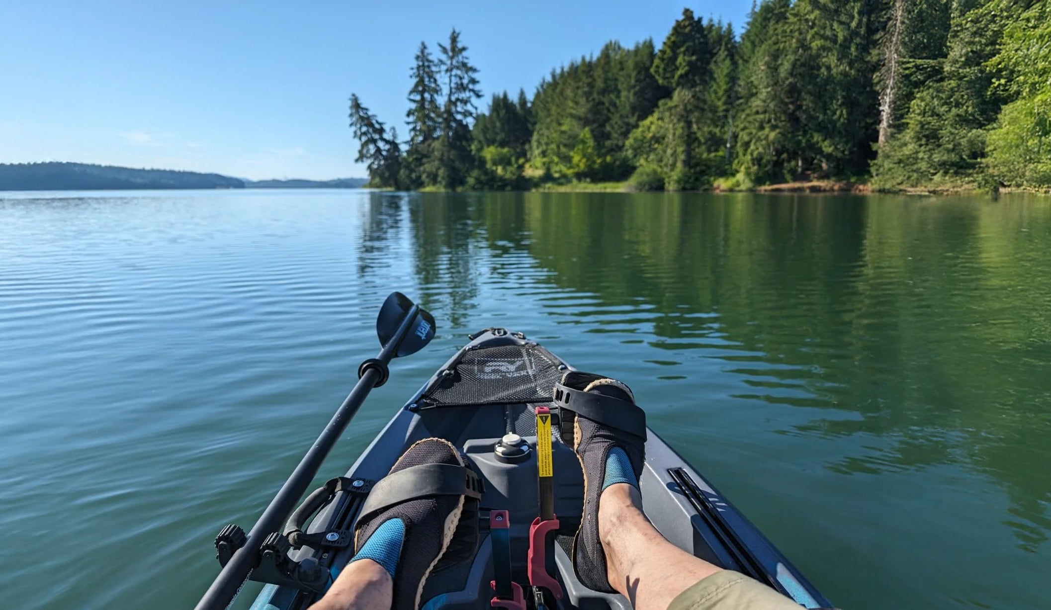 The Raptor makes smart trade-offs for performance. Its slim design is nimble and stable when seated, though standing requires a bit more balance—easily fixed with stabilizers. It lacks a recessed transducer mount, but one can be attached to the rail, and its two-position seat fits most paddlers comfortably.